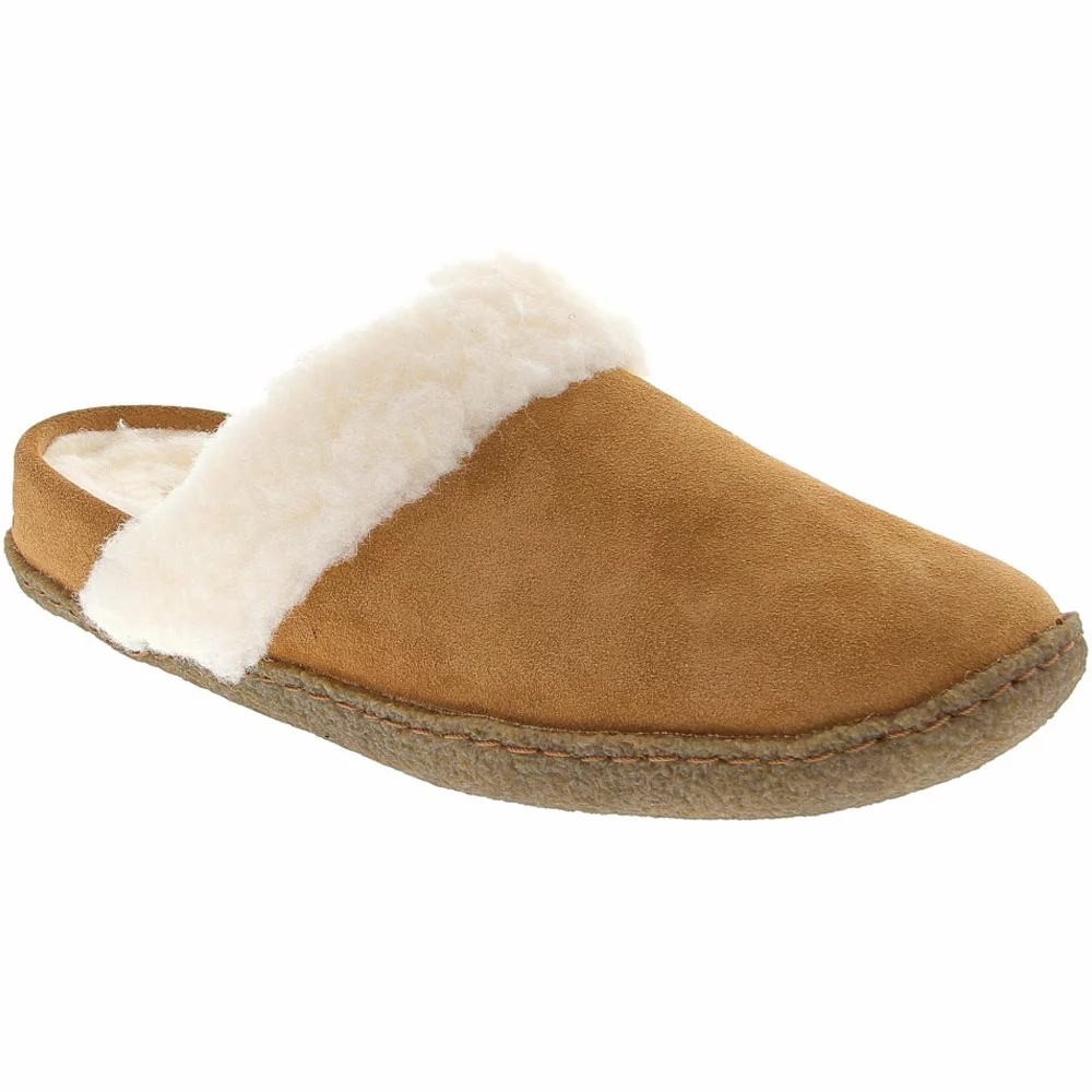 Sorel Nakiska Slide 2 Women’s Slippers. These mule-style women’s slippers feature faux fur lining and a thick rubber outsole to provide cushioning and insulation. A seamless suede upper creates a classic profile with a single line of stitching near the top of the outsole. Removable molded EVA footbeds will conform to the shape of your feet over time. A low back makes these slippers easy to put on and take off, and is imprinted with the brand name.