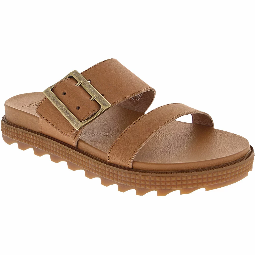 Sorel Roaming Buckle Slide Sandals – Womens. Women on the go can slip right into a stylish look thanks to these womens slide sandals. Subtle yet classic and sophisticated, these sandals complement an array of casual ensembles. These slip-on sandals stay secure thanks to an adjustable, oversized buckle. An EVA-cushioned midsole and footbed keep feet comfortable all day. They also feature a rubber outsole that is durable and provides traction suitable for all-day wear.