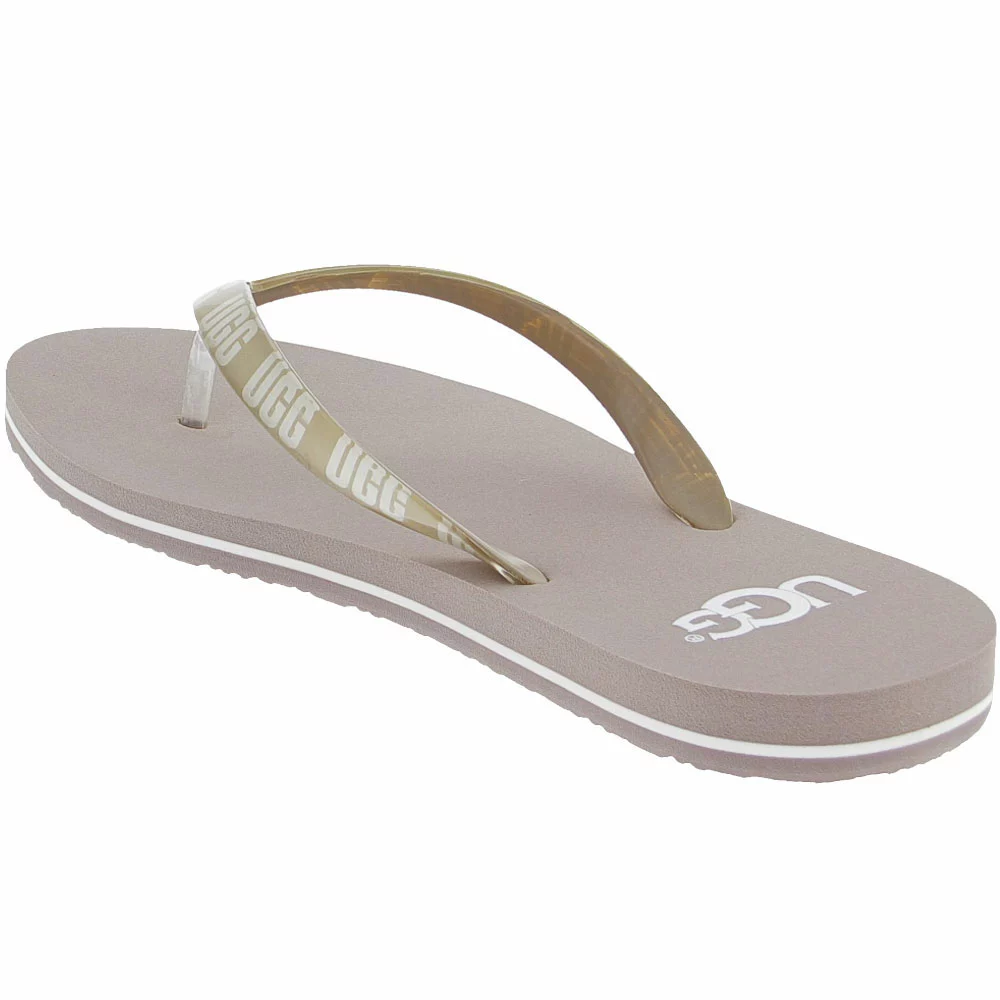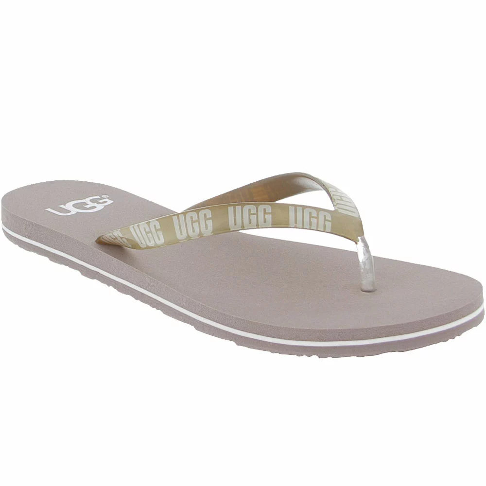 UGG Simi Graphic Women’s Flip Flops. These Ugg Simi Graphic Flip Flop Women’s Shoes offer casual comfort and style at the beach or pool inspired by the bold colors, logos and graphics worn by Los Angeles fashionistas. They feature contrasting logos across the straps and along the sides of the soles.