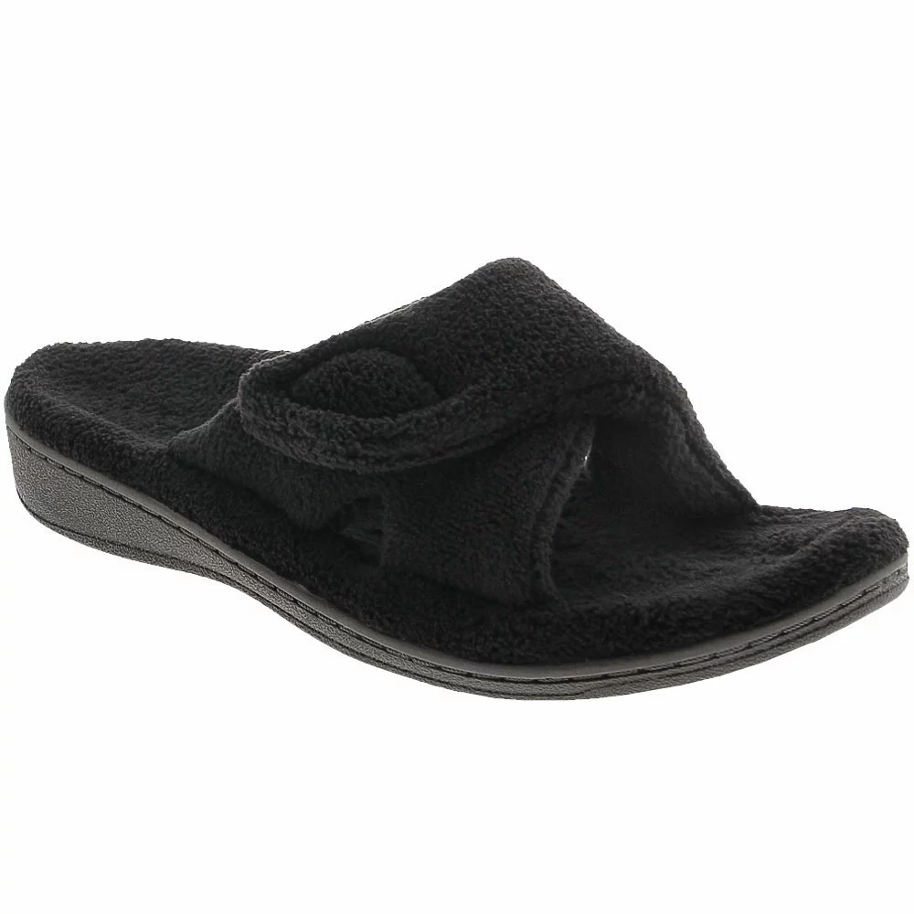 Vionic 26 Relax Slippers – Womens. Take your comfort to a whole new level in Vionic’s Relax Slipper. Its features include a flexy EVA midsole, integrated orthotic footbed and hook-and-loop closure for a perfectly adjustable fit. Proprietary Orthaheel technology delivers traditional activewear-style support in this casual loungewear option, and the faux fur design creates a plush, comfy nest you will love sliding your feet into every day.