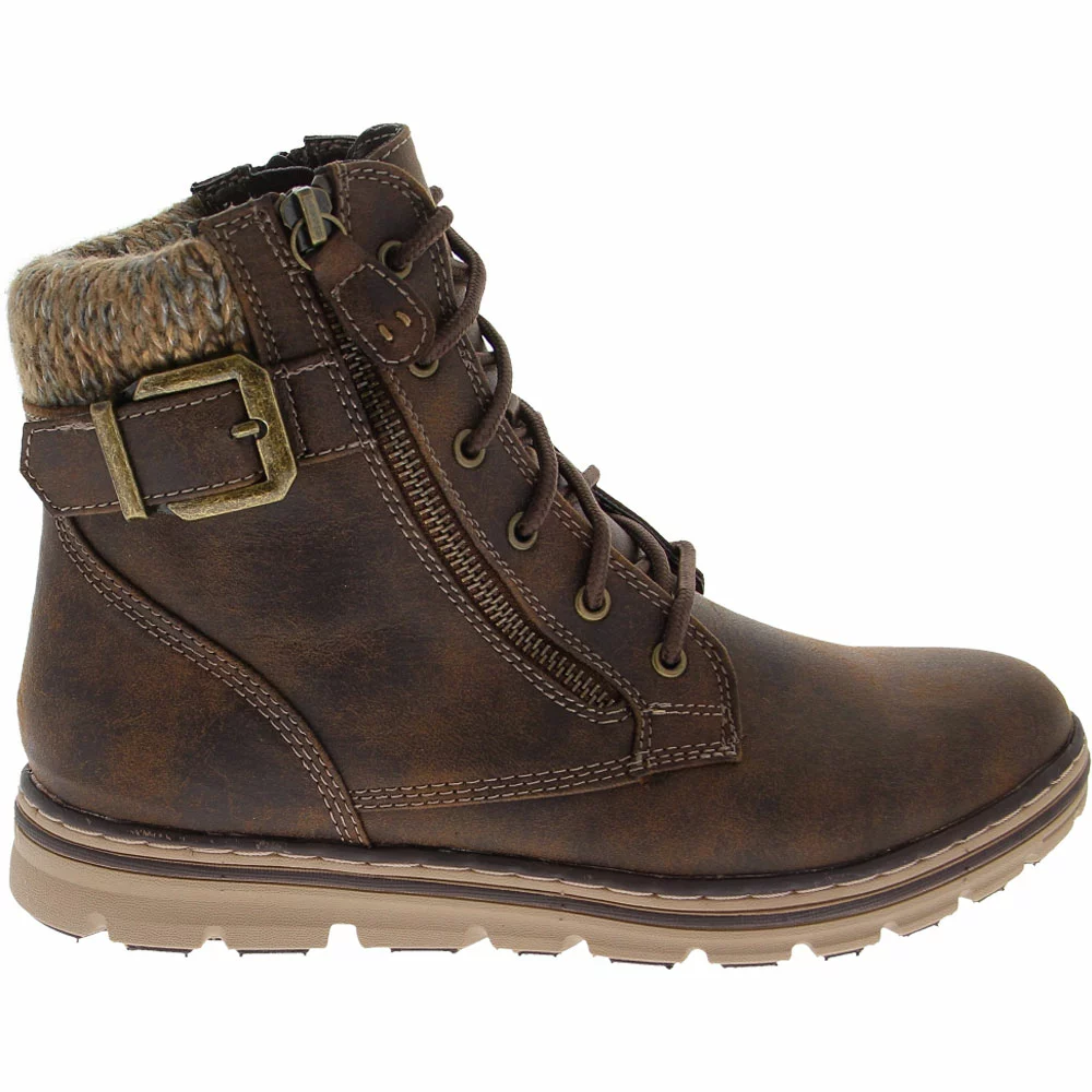 White Mountain Kelsie Casual Boots – Womens. Enjoy an invigorating day outdoors with these womens casual boots. The faux leather upper features a 5-inch shaft height and an external zipper closure. A buckle accent adorns the sweater collar for added style. A lace closure ensures a snug and adjustable fit. The lightly cushioned insole keeps you comfortable while the molded EVA outsole gives you added support. This mix of comfort and rugged style might make these your go-to booties for chilly outdoor adventures.