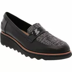 Clarks Sharon Gracie Slip On Casual Shoes – Womens Black White